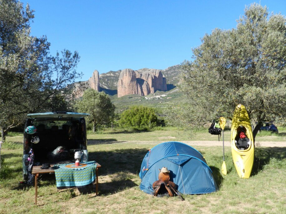 De camping ligt op slechts enkele minuten lopen van de rivier de Gallego, met directe toegang tot het water voor zwemmen of kajakken. Daarnaast ligt op loopafstand het charmante dorpje Murillo de Gállego, waar je niet alleen kunt genieten van uitzicht op de indrukwekkende Mallos de Riglos, maar ook terecht kunt voor een lokaal drankje of een maaltijd met streekproducten. Natuurliefhebbers komen in deze regio helemaal aan hun trekken. De Mallos de Riglos, de kenmerkende zandstenen rotsformaties, domineren het landschap en bieden een indrukwekkend decor voor wandelingen, vogelspotten of gewoon een goed boek in het gras.